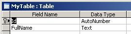 First, create a table named MyTable with these fields: