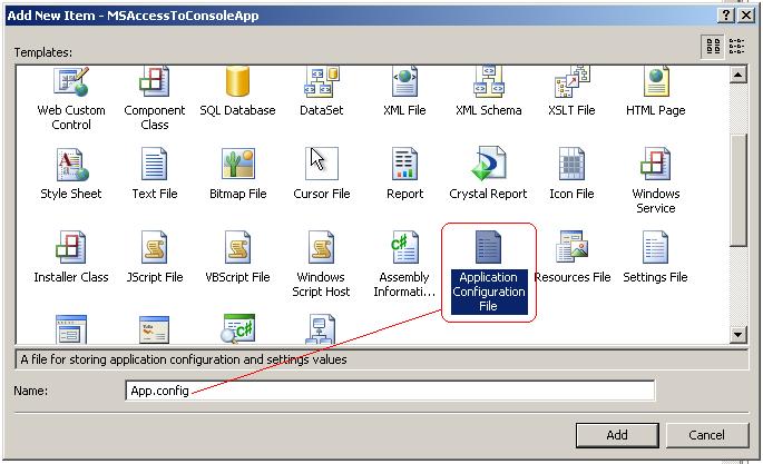 Then add an app.config file so you can keep the connection string outside the code: